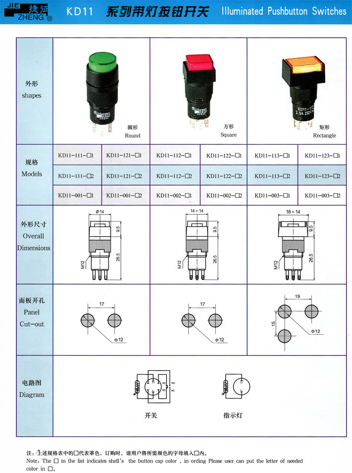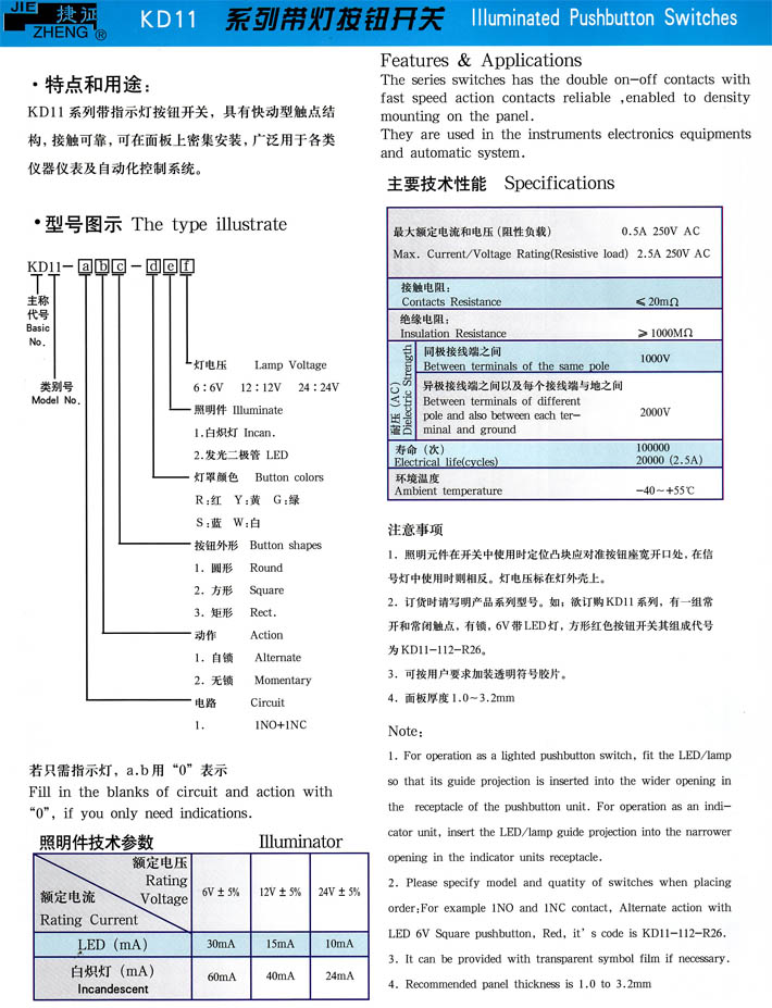 產(chǎn)品型號:KD11系列帶燈按鈕開關